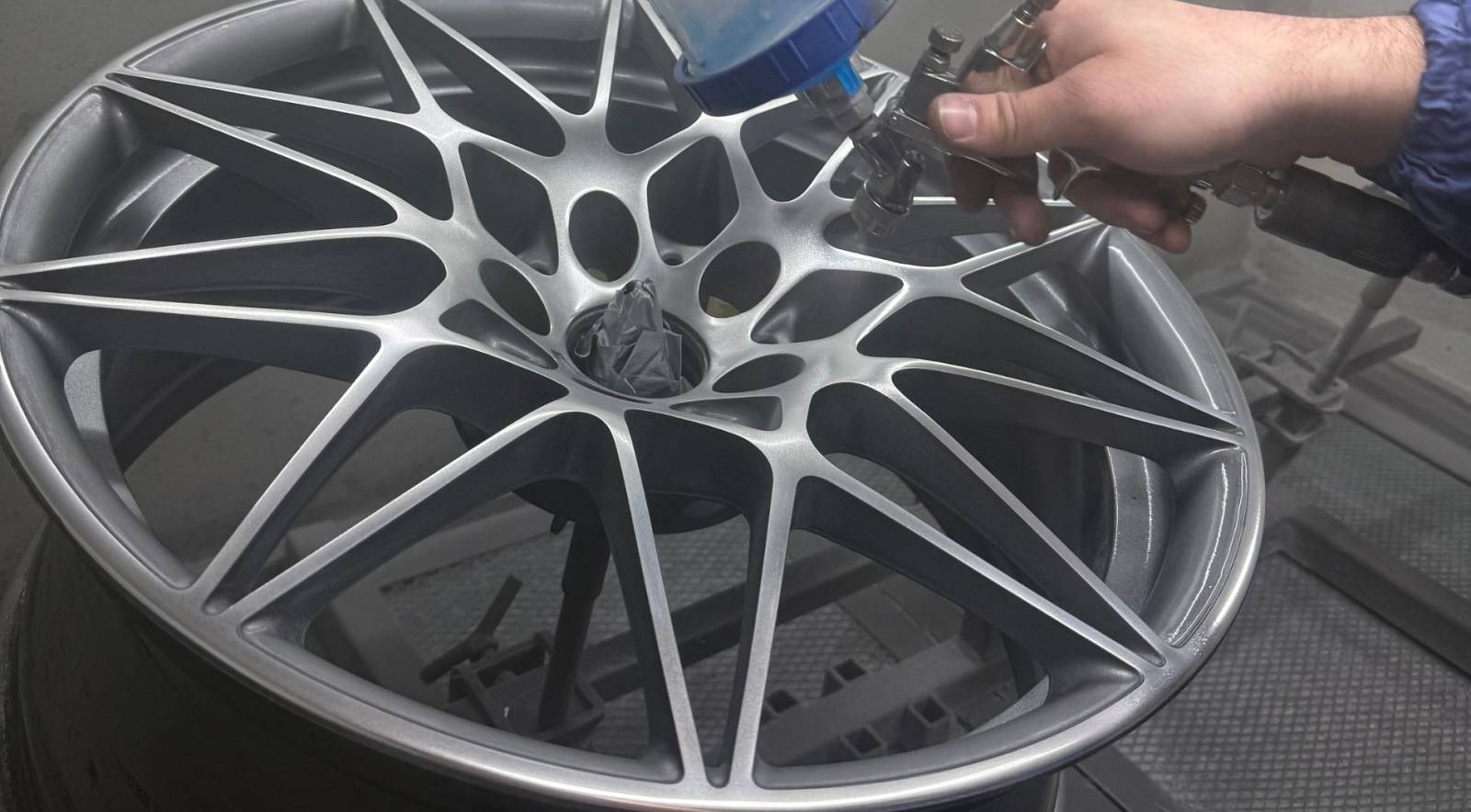Pour finaliser la réparation, une mise en peinture de protection a été appliquée sur la jante. Cette couche de peinture non seulement protège la surface de l'aluminium contre les agressions extérieures, mais elle contribue également à la durabilité du poli chromage réalisé précédemment. Le client a été ravi de constater que la jante de sa BMW M3 retrouvait une finition de qualité, proche de l'état neuf et conforme à l'apparence d'origine.